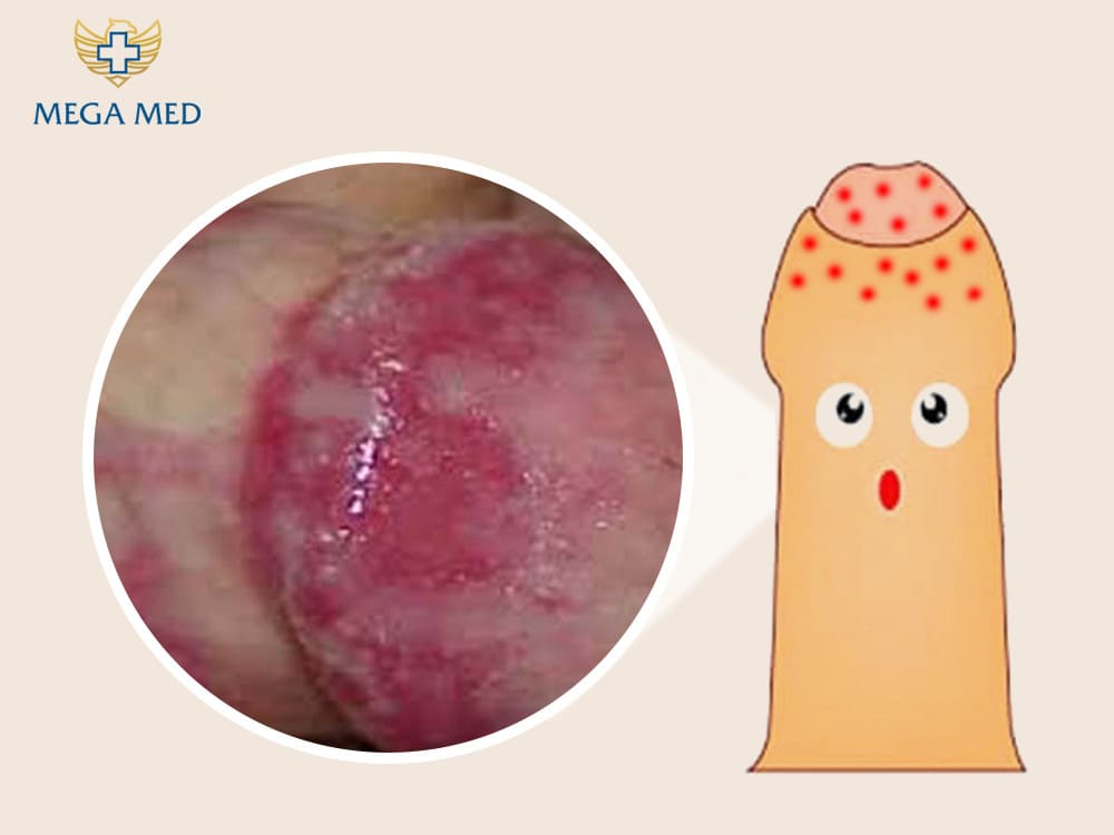Vùng da bao quy đầu bị kích ứng, sưng tấy.