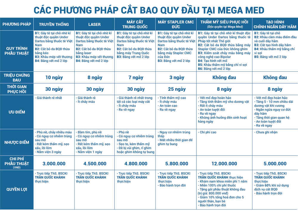Bạn có thể tham khảo thêm bảng giá cắt bao quy đầu cho người lớn tại Mega Med: