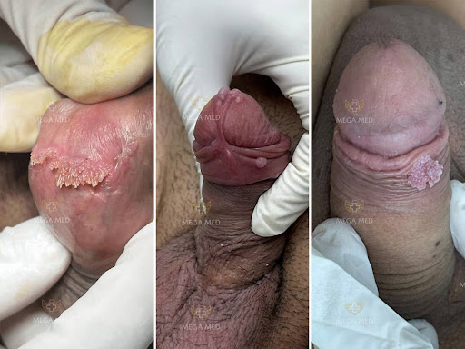 Để giảm nguy cơ biến chứng, cần kiểm tra và điều trị sớm nếu có dấu hiệu nghi ngờ sùi mào gà và thực hiện các biện pháp phòng ngừa phù hợp. Hãy liên hệ ngay với Phòng khám Nam khoa và Ngoại khoa Mega Med qua Hotline 0987869115 ngay khi có những triệu chứng lâm sàng tương tự như trong ảnh nhé!