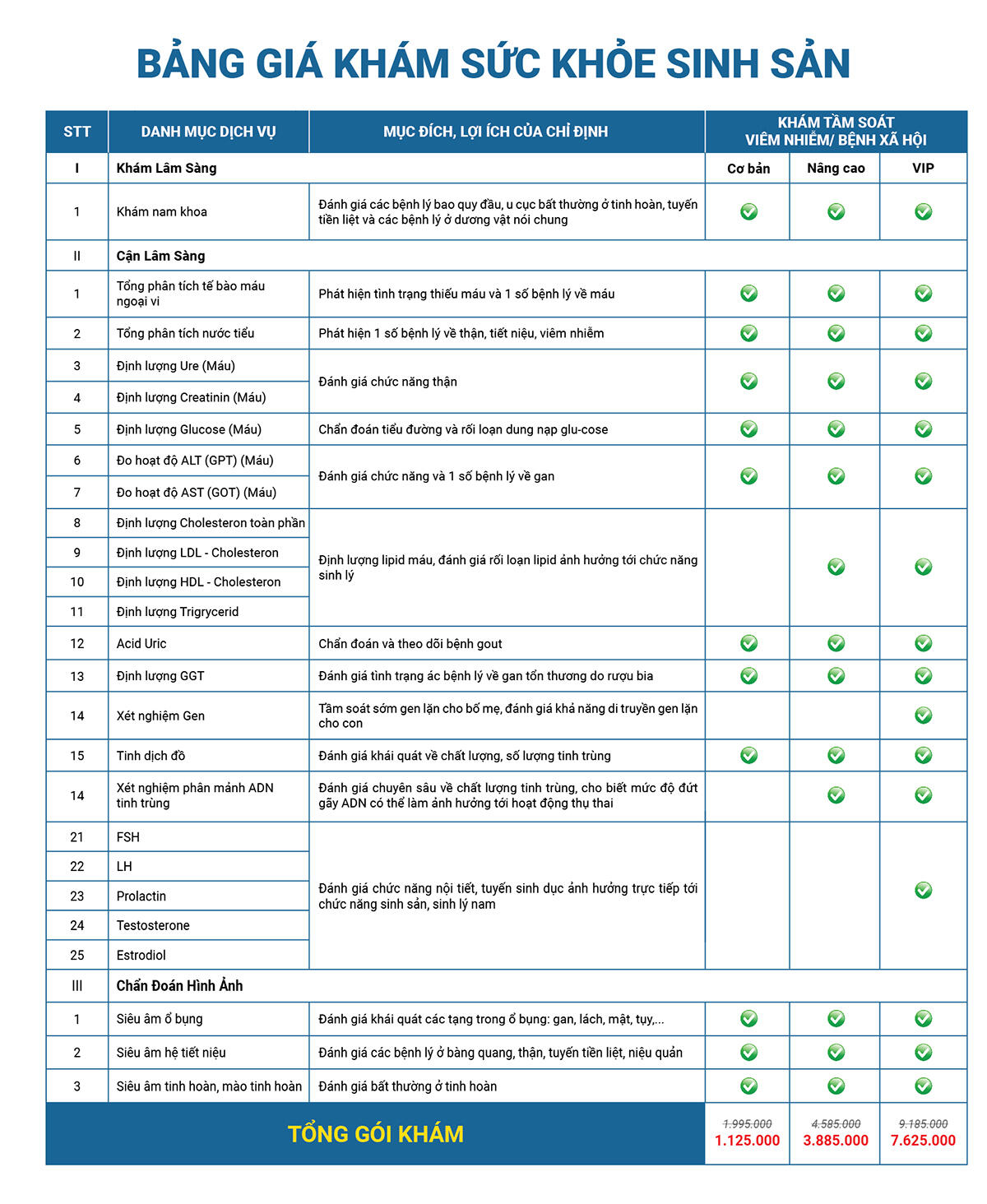 - Phù hợp kiểm tra định kỳ - giá ưu đãi: 1.125.000 VNĐ