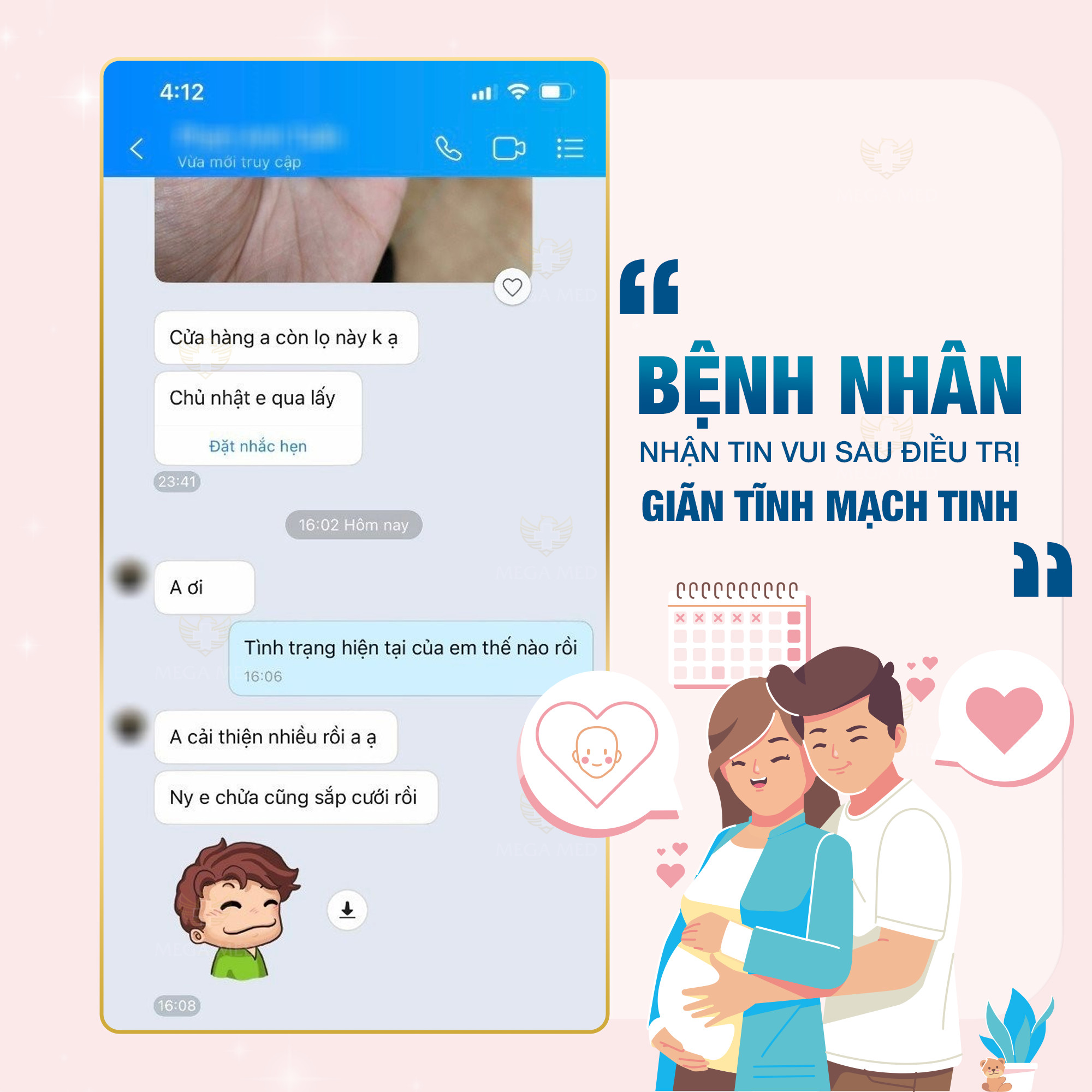 Hạnh phúc của bệnh nhân cũng chính là niềm vui, động lực cho đội ngũ Y bác sĩ của Mega Med nỗ lực nhiều hơn nữa. Chúc anh T. và gia đình luôn có nhiều sức khỏe, thuận lợi đón con yêu chào đời. Cảm ơn anh đã tin chọn Phòng khám Ngoại khoa và Nam khoa Mega Med là nơi chăm sóc sức khỏe và trao gửi niềm tin.