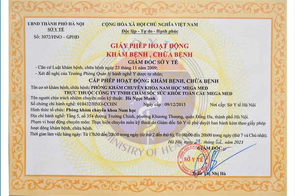 Mega Med là một trong số rất ít Phòng khám Nam học được cấp phép tại Hà Nội